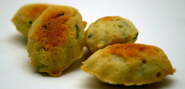 Eu não tenho uma tendência muito grande a lembrar todos os ingredientes da receita na hora de cozinhar, o que faz com que alguns probleminhas apareçam no meu caminho. Além disso, o medo de deixar as coisas muito doces ou muito salgadas também atrapalham um pouco. Foi o que aconteceu com essas madeleines ao pesto verde, em que eu coloquei muito menos sal do que o necessário e depois tive que colocar sal por cima na hora de servir. Péssimo, mas ainda acho que foi melhor do que colocar demais.