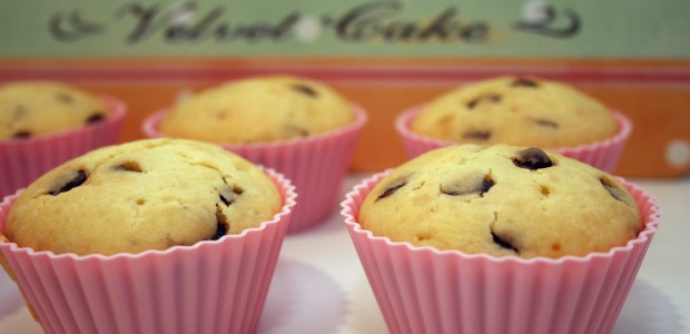 Essas fofuras foram feitas usando a mesmíssima receita de bolo de iogurte grego da Nestlé, que eu já mostrei nesse post aqui, ó. A única diferença foram as gotinhas de chocolate. Nunca encontro gotas de chocolate para vender e essas aí deram mole no supermercado no mesmo dia em que eu comprei as forminhas. Intervenção divina, digo eu.